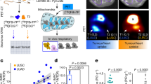 We thank C. Zamilpa, D. Abeydeera, W. Ladno, O. Sergeeva, D. Williams and T. Olafsen for assistance with PET/CT imaging of the mice. We thank M. Cilluffo, R. McMickle, V. Muhunthan, M. Han and E. Assali for laboratory assistance. We thank the Translational Pathology Core Laboratory at UCLA’s DGSOM for assistance with tumour sample preparation and processing. This research was supported by the NIH National Center for Advancing Translational Science (NCATS) UCLA CTSI Grant number UL1TR001881. D.B.S. was supported by the UCLA CTSI KL2 Translational Science Award grant numbers KL2TR001882 at the UCLA David Geffen School of Medicine, the UCLA Jonsson Comprehensive Cancer Center grant P30 CA016042, the Department of Defense LCRP grant number W81XWH-13-1-0459 and the NIH/NCI R01 CA208642-01. S.T.B. was supported by an NIH T32 training grant HL072752. A.J. was supported by a USHHS Ruth L. Kirschstein Institutional National Research Service Award T32 CA009056. G.A. and A.G. were supported by an NIH/NCI R01 CA208642-01 diversity supplement. J.T.L. was supported by NIH/NCI P30 CA016042. This research was supported by the Joyce and Saul Brandman Fund for Medical Research. We thank the Scott family and the Carrie Strong Foundation as well as B. and D. Goldfarb for their support.