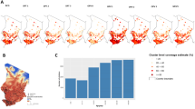 We included 26 geospatial covariates as possible predictors of MCV1 coverage in the modelling process, including maternal education, access to major cities or settlements, a binary urban or rural indicator, total population and a suite of 22 environmental covariates (Supplementary Fig. 4 and Supplementary Table 6). Four national-level covariates were also included: lag-distributed income, prevalence of the completion of the fourth antenatal care visit among pregnant women, mortality due to war and terror, and bias-adjusted national-level administrative data on MCV1 coverage reported through the WHO/UNICEF Joint Reporting Form (Supplementary Information section 1.5.1). For each region, an optimized set of geospatial covariates was selected from these 26 possible covariates, using a variance inflation factor (VIF) algorithm57 in which covariates were selected with a VIF < 3. This method was used to ensure non-collinearity between covariates within each region to facilitate model convergence. Selected covariates varied by region (Supplementary Table 7).