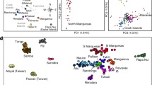 We thank the participants and volunteers who donated DNA samples for this study and the many researchers who contributed to collecting samples, in particular J. Martinson, D. Weatherall and J. Clegg, as well as H.-W. Peng (Taiwan), T. Teariki (Cook Islands) and J. Roux (French Polynesia). We thank P. P. Edmunds Paoa, mayor of the Municipality of Easter Island, the Rapahango family, H. Huke, T. Hotu, O. Hey Riroroko, J. Emilio Estay and S. Fareea for providing local support during fieldwork and community engagement on Rapa Nui. We also thank the Rapa Nui Museum and the Office of Rapa Nui Patrimony for outreach support, and the people of Rapa Nui for making this study possible. We thank M. Stoneking for facilitating access to published data that enabled early stages of the analyses, as well as the ChileGenomico project consortium for providing access to reference genotype data from 16 Aymara individuals and 32 of Mapuche ancestry. We acknowledge the National Institutes of Health (NIH) genome-wide association study (GWAS) Data Repository for granting access to the POPRES data set. We also thank the support from the Core Staff at the UCSF Institute for Human Genetics for contributing with genotyping capacity, and the Stanford Center for Computational, Evolutionary and Human Genomics (CEHG) for supporting the initial stages of this project. We are grateful for genotyping and IT support from J. Cervantes, M. Torres and technicians from LANGEBIO’s Genomics Core Facility at CINVESTAV, Mexico. This work was supported by the George Rosenkranz Prize for Health Care Research in Developing Countries, Mexico’s CONACYT Basic Research Program (grant number CB-2015-01-251380), and the International Center for Genetic Engineering and Biotechnology (ICGEB, Italy) grant CRP/MEX15-04_EC (each awarded to A.M.-E.); the American Society of Engineering Education NDSEG Fellowship and the National Library of Medicine (NLM) training grant T15LM007033 (awarded to A.G.I.); the Chilean funding programs FONDEF, FONDECYT and CONICYT (grants D10I1007, 1130303 and USA2013-0015, respectively); and the National Institute for Health Research (NIHR) Oxford Biomedical Research Centre (BRC) and the Wellcome Trust Fellowship with reference 106289/Z/14/Z (to A.J.M.). Views expressed are those of the author(s) and not necessarily those of the NIHR, the NHS or the UK Department of Health.
