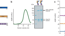 a, The Superose-6 gel filtration elution profile for the C9orf72–SMCR8–WDR41 complex. b, The Superose-6 gel filtration elution profile for the C9orf72–SMCR8 complex. mAU, milli-absorbance units. c, The purified full-length C9orf72–SMCR8–WDR41 and C9orf72–SMCR8 complexes were analysed by SDS–PAGE. The proteins were purified at least five times with similar results (a–c). d–f, Deuterium uptake data for the C9orf72–SMCR8–WDR41 complex at the 0.5-s time point, with error bars from triplicate technical measurements. Peptides with more than 50% deuterium uptake are the flexible regions. Y axis represents the average per cent deuteration. X axis demonstrates the midpoint of a single peptic peptide.