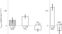 The UK eddy covariance data set used in the study is available from the UK Environmental Information Data Centre (EIDC), with the identifier: https://doi.org/10.5285/b8c9fd3d-f9ea-4fd8-9557-9022884f711d. Summary and literature-derived data are included in Extended Data Tables 1–3.
