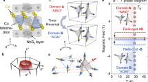 Rotating the direction of the magnetization away from [010] distorts the FS sheets, where TPs exist only on those BZ boundaries parallel to the magnetization (Supplementary Videos 1 and 2). For instance, rotating the moments within the x–y plane away from [010] breaks the magnetic screw rotation \(\theta {\tilde{C}}_{2}^{x}\), but keeps \(\theta {\tilde{C}}_{2}^{z}\) intact. In turn, the TPs gap out on the ky = ±π and kx = ±π planes, whereas they remain degenerate at the kz = ±π planes (Extended Data Fig. 1, Supplementary Note 1).
