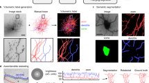 Single neurons have traditionally been labelled with molecular markers using whole-cell patching, in vivo electroporation12,13,14, sparse transgenic expression15 or sparse viral infection16,17,18,19, followed by manual reconstruction across many consecutive sections. The recent development of high-throughput and high-resolution fluorescent imaging platforms, such as fluorescence micro-optical sectioning tomography (fMOST)20,21 and MouseLight22,23, has enabled the generation of large-scale datasets for neuron reconstructions. Further improvements in brain-wide single-cell labelling methods and computational tools to expedite the laborious reconstruction process are still needed to achieve scalable and complete reconstructions from a comprehensive set of cell types.