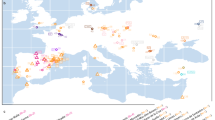 Spatial barriers to gene flow prior to about 3000 bc, between about 3000 and 2000 bc and following about 2000 bc were run using EEMS16 (built with Eigen version 3.2.2 and Boost version 1.57, and using rEEMSplots version 0.0.0.9000) for 50 million iterations and considering a burn-in of 15 million iterations. Convergence was ensured from visual inspection of likelihood trajectories as well as by the strong correlation obtained between the observed and fitted genetic dissimilarities. Pie-charts depicting the ancestry proportions inferred by Struct-f4 were overlaid on the migration surfaces to facilitate tracking the geographic position of each excavation site, averaging ancestry proportions or using individual ancestry profiles if only one sample was characterized genetically at that location. Spatial pie-chart projection was carried out using the draw.pie R function from the mapplots package81 (version 1.5.1). The size of each individual pie-chart was commensurate with the number of samples excavated at a given geographic location, provided that the number of samples was lower than 10, while set to a constant maximum radius otherwise.