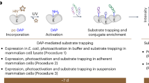 Next, we set out to extend our approach to capturing and identifying protease substrates in human cells (Extended Data Fig. 4a). It was unclear—on the basis of previous work2—whether pc-Dap could be converted to Dap in live cells to activate protease substrate traps. We set out to: encode pc-Dap in human cells, investigate the activation of a protease substrate trap through deprotection of pc-Dap to Dap in human cells, and demonstrate the covalent capture of protease substrates in human cells.