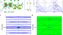 a, Crossing point energies EB and b, crossing point momenta (kx, ky) systematically extracted from cone dispersions observed in the ARPES spectra (magenta squares), same dataset as Fig. 2c (hν = 544 eV), with fit of the Weyl loop momentum trajectory and energy dispersion (cyan, see main text). The crossing point energies are parametrized by a polar angle θ defined by tan θ ≡ ky/kx. c, Weyl loop trajectory from DFT, with dotted lines indicating the DFT energy-momentum slices shown in Fig. 2b. The binding energy axes in (b) and (c) are collapsed58.