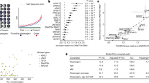Target enrichment of whole-blood DNA was performed using a custom RNA bait set (Agilent SureSelect ELID 3156971), designed complementary to 56 genes implicated in clonal haematopoiesis and haematological malignancies (Supplementary Table 1). Libraries were sequenced on Illumina HiSeq 2000 and variant calling was performed as we described previously5,50. In brief, somatic single-nucleotide variants and small indels were called using Shearwater (v.1.21.5), an algorithm designed to detect subclonal mutations in deep sequencing experiments51. Two additional variant-calling algorithms were applied to complement this approach: CaVEMan (v.1.11.2) for single-nucleotide variants, and Pindel (v.2.2) for small indels52,53. VAF correction was performed using an in-house script (https://github.com/cancerit/vafCorrect). Finally, allele counts at recurrent mutation hotspots were verified using an in-house script (https://github.com/cancerit/allelecount). Variants were filtered as we described previously5,50, but were not curated with regard to existing notions of oncogenicity, that is, all somatic variants passing quality filters were retained for analysis.