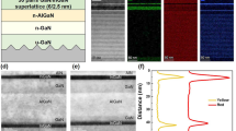 a–e, STEM-HAADF images of the MQWs in the sidewall region according to the fabrication steps, that is, dry etch (a), wet etch (b), sol–gel SiO2 deposition (c) and plasma-enhanced ALD SiO2 deposition of thicknesses of 2 nm (d) and 60 nm (e). The increase in the plasma-induced amorphization at the quantum well sidewall with increasing thickness of the SiO2 layer from 2 nm (d) to 60 nm (e) is evident.