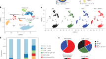 The draining inguinal lymph node was collected and chopped into small pieces, then digested in 1 ml RPMI containing 1 mg ml−1 collagenase IV (Worthington Biochemical), 40 μg ml−1 DNase I (Roche, 04716728001) and 2% heat-inactivated FCS for 15 min at 37 °C using a thermoblock. Skin tissue was digested in RPMI containing 1 mg ml−1 collagenase IV, 2 mg ml−1 Dispase II (Roche), 40 μg ml−1 DNase I and 2% heat-inactivated FCS for 30 min at 37 °C. Chopped tumour tissue was digested using 1 mg ml−1 collagenase IV, 40 μg ml−1 DNase I and 2% heat-inactivated FBS for 30 min at 37 °C, and the remaining tumour went through 30 min further digestion using 1 mg ml−1 collagenase D (Roche). Cells were rinsed through a 70 μm cell strainer to obtain single-cell suspensions.