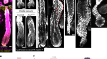 Mice were anaesthetized by intraperitoneal injection of ketamine and xylazine cocktail mix (100 mg kg−1 and 10 mg kg−1, respectively in phosphate-buffered saline) and then anaesthesia was maintained throughout the course of the experiment with the delivery of vaporized isoflurane by a nose cone as previously described60. Image stacks were acquired with a LaVision TriM Scope II (LaVision Biotec) laser scanning microscope equipped with a tunable Two-photon Chameleon Vision II (Coherent) Ti:Sapphire laser. To acquire serial optical sections, a laser beam 940 nm was focused through a 20× water immersion lens (NA 1.0; Zeiss) or a 25× water immersion lens (NA 1.1; Nikon) and scanned with a pixel size of 0.49 × 0.49 μm2 or 0.43 × 0.43 μm2 at 800 Hz. Z-stacks were acquired in 2–3 μm steps to image a total depth of 90–900 μm of the tissue. ImSpector v7.5.2 (LaVision Biotec) was used for 3D image acquisition. To visualize large areas, 5–12 tiles of optical fields were imaged using a motorized stage to automatically acquire sequential fields of view as previously described60. Mice were imaged at different time points after tamoxifen treatment and injury induction as indicated. To revisit the same area of the skin epidermis, organizational clusters of hair follicles and vasculature were used as landmarks.