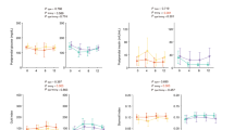 We followed the extraction process and gas chromatography-tandem MS (GC–MS/MS) measurement methods for water-soluble metabolites described previously46 with some modifications. In brief, a 10 μl aliquot of plasma was added to 150 μl methanol, 125 μl Milli-Q water, 15 μl internal standard solution (1 mM 2-isopropylmalic acid) and 60 μl CHCl3. For faecal samples, a 25 μl aliquot of methanol extract was added to 125 μl methanol, 150 μl Milli-Q water containing internal standard (100 μM 2-isopropylmalic acid) and 60 μl CHCl3. The solution was shaken at 1,200 rpm for 30 min at 37 °C. After centrifugation at 16,000g for 5 min at room temperature, 250 μl of the supernatant was transferred to a new tube and 200 μl of Milli-Q water was added. After mixing, the solution was centrifuged at 16,000g for 5 min at room temperature, and 250 μl of the supernatant was transferred to a new tube. The samples were evaporated dry using a vacuum evaporator for 20 min at 40 °C and lyophilized using a freeze dryer. Dried extracts were derivatized with 40 μl of 20 mg ml−1 methoxyamine hydrochloride (Sigma-Aldrich) dissolved in pyridine and shaken at 1,200 rpm for 90 min at 30 °C. The solution was then mixed with 20 μl of N-methyl-N-trimethylsilyl-trifluoroacetamide (MSTFA, GL Science) and incubated for 30 min at 37 °C with shaking at 1,200 rpm. After derivatization, the samples were centrifuged at 16,000g for 5 min at room temperature, and the supernatant was transferred to a glass vial. The analysis was performed using a GC–MS/MS platform on the Shimadzu GCMS-TQ8030 triple quadrupole mass spectrometer (Shimadzu) with a capillary column (BPX5, SGE Analytical Science). The GC oven was programmed as follows: 60 °C held for 2 min, increased to 330 °C (15 °C min−1), and finally 330 °C held for 3.45 min. GC was operated in constant linear velocity mode set to 39 cm s−1. The detector and injector temperatures were 200 °C and 250 °C, respectively. Injection volume was set at 1 μl with a split ratio of 1:30.