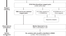 In most studies performed using SomaScan, the last step in the normalization process adjusts the median protein levels for each individual to a reference (referred to as SMP normalization), as recommended by the manufacturer, whereas some studies omit this step2,7,10. The results presented in this Article are based on the median-adjusted data; the unadjusted results are presented and the effect of the adjustment are discussed in Supplementary Note 4.