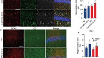 Fixed-frozen tissue was processed as described above. Serial coronal sections (14 μm) containing striatum were prepared using a cryostat microtome (Leica) at −20 °C and mounted immediately onto glass slides. In situ hybridization was performed using Multiplex RNAscope (ACDBio 320851). Sections were washed for at least 15 min with 0.1 M PBS, and then incubated in 1× Target Retrieval Reagents (ACDBio 322000) for 5 min at 95–100 °C. After washing with ddH2O twice for 1 min each, they were dehydrated with 100% ethanol for 2 min and dried at room temperature. Then, the sections were incubated with Protease Pretreat solution (ACDBio 322340) for 30 min at 40 °C. The slides were washed with ddH2O twice for 1 min each and then incubated with probe(s) for 2 h at 40 °C. The following probes were used: Mm-Crym-C3 (ACDBio 466131-C3), Mm-Drd1-C3 (ACDBio 461901-C3) and Mm-Drd2-C3 (ACDBio 406501-C3). The sections were incubated in AMP 1-FL for 30 min, AMP2-FL for 15 min, AMP3-FL for 30 min and AMP4-FL for 15 min at 40 °C with washing in 1× wash buffer (ACDBio 310091) twice for 2 min each before the first incubation and in between incubations. All the incubations at 40 °C were performed in the HybEZ Hybridization System (ACDBio 310010). Slices were washed in 0.1 M PBS three times for 10 min each, followed by IHC that was performed as described above except with antibody dilutions. The following primary antibodies were used: mouse anti-µ-crystallin (1:100, Santa Cruz, sc-376687), rabbit anti-DARPP-32 (1:500, Abcam, ab40801) and rabbit anti-S100β (1:500; Abcam ab41548). Images were obtained in the same way as for the IHC described above, and were processed with Image J (NIH v.2.1). Astrocyte area was demarcated by drawing an 80-µm-diameter circle around the soma (the average size of striatal astrocytes based on our previous experiments). Then, the percentage of D1 and D2 positive neurons was quantified within this area.
