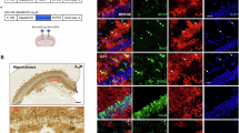 Quantitative real-time PCR (rt–qPCR) assay was used to determine the level of Adora2b expression in the hippocampal tissue of Adora2Bflox/flox mice transduced to express iCre recombinase or tdTomato in astrocytes and in Adora2bflox/flox:\(Aldh{1}l{{1}}^{Cre/ERT{{2}}^{+}}\) and Adora2bflox/flox:\(Aldh{1}l{{1}}^{Cr{e}^{-}}\) mice treated with tamoxifen. Total RNA was extracted, purified (RNeasy mini kit, 74106, Qiagen) and reverse transcribed using the QuantiTect Reverse Transcription Kit (205311, Qiagen) as per the manufacturer’s protocol. PCRs were performed in 20-μl volumes using the TaqMan Universal Master Mix II (4440040, Thermo Fisher) with a final volume of 9 μl cDNA, equivalent to 25 ng of RNA, sample template per reaction. PCRs were performed using the TaqMan assay (Adora2b, Mm00839292_m1, 61-bp amplicon length, Thermo Fisher) as detection method and an Agilent Technologies Aria Mx Real-time PCR system (Agilent). Adora2b expression was quantified using the comparative CT method (∆∆Ct) and presented as arbitrary units of expression, normalized to the expression of the ubiquitin C gene (Mm01201237_m1, 92-bp amplicon length, Thermo Fisher).