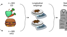 Moreover, we assessed whether individual lifespan extension could be explained by changes in body weight in the post-DR period. Notably, we found that, within diet groups, mice that retained more weight had longer lifespans35 (Extended Data Fig. 4e). In contrast to the conventional notion suggesting that the beneficial effects of DR are due to reduced levels of obesity36, body weight loss at any age was associated with reduced lifespan (Fig. 2c (second row)). These results argue against the notion that DR works simply by counteracting the negative effects of obesity.