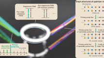 where \(| {\rm{cov}}({{\mathcal{N}}}_{i},{{\mathcal{N}}}_{j})| \) represent the absolute value of nullifier correlations. With the optimized squeezing distribution, the correlation matrices and corresponding γ values of {0.058, 0.048, 0.101, 0.109} reported in Fig. 5c are measured for the four generated states in our experiment, which match with the simulation results in Fig. 5b derived from the measured squeezing distribution of the eigen-supermodes. The simulation results in Fig. 5b indicate the optimal achievable values of γ to be {0.007, 0.019, 0.006, 0.016} for the current experimental pump configurations. The discrepancy from the diagonal matrices in theory arises from slight deviations in the configurations of polychromatic pumps and polychromatic local oscillators from their ideal settings. These results indicate that the cluster structures efficiently capture almost all the entanglement information in our experiment, closely approximating the characteristics of the corresponding cluster-type states. Future enhancements to the experimental system will enable a more accurate characterization of the generated multipartite entanglement. Details are provided in Supplementary Information sections 2.1 and 3.3.