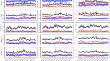 To account for diurnal, seasonal and longer-term variations in the data, we included temporal information as input to both the encoder and forecasting modules. These channels consisted of \(\sin \left(\frac{2{\rm{\pi }}d}{366}\right),\cos \left(\frac{2{\rm{\pi }}d}{366}\right),\sin \left(\frac{2{\rm{\pi }}h}{24}\right)\) and \(\cos \left(\frac{2{\rm{\pi }}h}{24}\right)\), where d is the day of the year and h is the hour of the day. The absolute year was also included to account for any changes in data characteristics over the training record. To account for the effects of orography on the weather system, we included several sources of orographic information taken from the ERA5 dataset34 as static fields. The data were provided by the ECMWF. These were the geopotential at surface level, angle of sub-grid-scale orography, anisotropy of sub-grid-scale orography, slope of sub-grid-scale orography and standard deviation of orography.