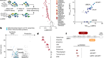 For immunoprecipitations performed from cells lysed in digitonin lysis buffer, cells were collected after washing in PBS and immediately lysed (never frozen) in digitonin lysis buffer (40 mM HEPES pH 7.5, 150 mM NaCl, 50 μg ml−1 digitonin (Sigma-Aldrich, D141)), with Roche cOmplete Protease Inhibitor Cocktail (Sigma-Aldrich, 11873580001), carfilzomib (2 μM, Selleckchem, S2853) for 10 min with rotation at 4 °C. Lysed cells were then spun down at 2,000g for 5 min at 4 °C and the supernatant was collected, and 5% input was removed. The supernatant was added to equilibrated anti-Flag-M2 Affinity Agarose Gel slurry (Sigma-Aldrich, A2220) and rotated for 1–2 h at 4 °C. The following wash and elution steps were the same as described above for NP-40 lysis. The pellet obtained after centrifugation of the digitonin-lysed cells was also subsequently lysed in NP-40 lysis buffer as described above to break open mitochondria and the sample was collected after centrifugation at 21,000g as the NP-40 fraction.