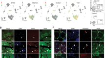 For cell annotation, profiles obtained using the 10x protocol were analysed separately for each organ and each individual through dimensionality reduction by principal component analysis (PCA), visualization in two-dimensional projections with t-stochastic neighbour embedding (t-SNE) and uniform manifold approximation and projection (UMAP) and clustering using the Louvain method in Seurat (v.2). For each obtained cluster of cells with similar profiles, the tissue compartment (epithelial, endothelial, stromal, immune, neural and germ) was assigned on the basis of the expression of lemur orthologues of compartment-specific mouse and human markers14 (Supplementary Table 1). Cells from each compartment were then separately and iteratively clustered until the differentially expressed genes (DEGs) that distinguished the resultant clusters were deemed not to be biologically relevant (for example, stress or ribosomal genes) (Extended Data Fig. 1a). Each cluster was assigned a cell-type designation, as detailed below.