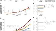 Each of these heatwaves is systematically characterized and analysed in a consistent framework, following the method promoted by the WWA initiative1. This method is shown with the Pacific Northwest heatwave of 2021 as reported for the United States (Fig. 1b), thus without British Columbia in Canada. This event was reported in Oregon, Washington, Northern California, Idaho and Western Nevada over 26–30 June 2021 (www.emdat.be). Usually, EEA defines the heatwave with a box surrounding the region1. Here the heatwave is defined using the exact spatial characterization in the EM-DAT database, as it represents how the disaster was experienced by the local populations1 (Fig. 1b). Daily temperatures are averaged over this period and region for every year of available observations. Although many indicators could be used to characterize the heatwave26, the choice of the average over the period is motivated by its relevance for the reported impact rather than its meteorological rarity (Methods). Following the method by WWA1 and justified by the extreme value theory27, a statistical relationship can be inferred that links the probability distribution of the event to the change in global mean surface temperature1 (GMST) (Fig. 1b). This relationship allows us to calculate the probability and the intensity of the heatwave, both under observed conditions with climate change and under the preindustrial climate of 1850–1900 without such perturbations (Fig. 1b). Using both observation-derived estimates (ERA5 (ref. 28) and BEST (ref. 29)) and Earth system models30, these results synthesize how climate change has affected the heatwave through a change in intensity and how many times more likely the event has become, which is called the probability ratio1. More details on the systematization of the WWA approach are provided in the Methods. Using only ERA528, the Pacific Northwest heatwave of 2021 over the United States had climate change increasing its intensity by 4.4 °C compared with that in 1850–1900, with a 95% confidence interval of 2.2–6.8 °C. Adding all other datasets29,30 relevant for the region decreases the influence of climate change to a change in intensity of the Pacific Northwest heatwave of 2021 over the United States of 3.1 °C (1.4–5.1 °C). The median estimate indicates that climate change has also increased the probability of heatwaves by more than 10,000, and at least seven times according to the lower bound of the confidence interval. This attribution is consistent with existing works on this heatwave: a previous work31 found a probability ratio of at least 150 and a change in intensity of 2.0 °C (1.2– 2.8 °C), whereas another analysis32 suggested a change in intensity of more than 2.9 °C. Although consistent, the results differ because of the characterization of the event and its very unlikely nature. The region and period are here determined through the reporting of the disaster for relevance to the impact rather than choices motivated by its meteorological rarity. Choosing the maximum temperature as an indicator over the period amplifies the extremeness of the event32,33. Very unlikely events such as the Pacific Northwest heatwave of 2021 are more difficult to investigate, increasing the dispersion across several analysis34. However, this increased dispersion does not lower the confidence in the conclusion, which is the strong influence of climate change on these unlikely events. The method described for this event is applied to the 226 heatwaves, with three other cases shown in Fig. 1c–e, with the results also consistent with available attribution studies.