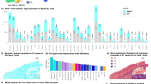 For blood cell analysis, one drop of blood was collected from the facial vein into FACS buffer (PBS containing 2% BSA (8076.3, Roth) and 10 mM EDTA (15575020, Invitrogen)) to prevent clotting. Blood cells were centrifuged at 300g for 5 min at 4 °C. The blood cell pellet was re-suspended in RBC lysis buffer (00-4333-57, Thermo Fisher) and incubated for 2 min at room temperature. Ice-cold FACS buffer was added and cells were centrifuged again before staining. For microglia analysis, mice were anaesthetized and transcardially perfused with ice-cold PBS. Brains were roughly minced and homogenized with a Potter tissue grinder in HBSS (14170-138, Gibco) containing 15 mM HEPES (15630080, Gibco) buffer and 0.54% glucose (G8769, Sigma). Whole-brain homogenate was separated by 37% Percoll (P1644, Sigma) gradient centrifugation at 800g for 30 min at 4 °C (no brake). The pellet containing CNS macrophages at the bottom of the tube was then collected and washed once with FACS buffer before staining. Fc receptors were blocked with Fc Block (2.4G2, BD Biosciences) for 15 min at 4 °C before incubation with the primary antibodies. Cells were stained with antibodies directed against CD11b (1:300, M1/70, BioLegend), CD45 (1:200, 30-F11, Invitrogen), Ly6C (1:300, AL-21, BD Biosciences), Ly6G (1:300, 1A8, BD Biosciences), CD115 (1:200, AFS98, Invitrogen), CD64 (1:200, X54-5/7.1, BioLegend), CD11c (1:300, N418, Invitrogen), CD3e (1:300, eBio500A2, Invitrogen), CD19 (1:300, eBio1D3, Invitrogen), B220 (1:300, RA3-6B2, BioLegend) and CD206 (1:200, C068C2, BioLegend) for 45 min at 4 °C. After washing, cells were sorted using a MoFlo Astrios (Beckman Coulter) or analysed using a BD LSRFortessa (Becton Dickinson). Viable cells were gated by staining with DAPI. Data were acquired with FACSDiva or Summit software (Becton Dickinson). We performed post-acquisition analysis using FlowJo software, v.10.5.3. Gating strategies for blood cells and microglia are shown in Supplementary Fig. 4c,d.