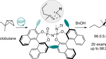 Exploitation of the cyclopropene ring’s highly strained character provided the cornerstone for the investigation38,39. Double bond migration from an endo-cyclic to an exo-cyclic position has previously been reported and generates a new tetrahedral-like carbon in the cyclopropane ring40,41,42. This substrate scope limited, non-enantioselective or diastereoselective transformation requires super-stoichiometric (achiral) bases, harsh reaction conditions and, with organic bases, a conjugative driving force (Fig. 1a(iii))40. We recognized that if the cyclopropene in Fig. 1a(iii) contains a prochiral π-bonded carbon atom, a stereogenic centre is generated following the migration of the double bond. Theoretically, a suitable electron withdrawing group attached to the prochiral carbon should allow a suitably strong, chiral Brønsted base to achieve enantioselective proton transfer from the external γ-position to the α-position43,44,45, yielding a more stable chiral ACP. When combined with exquisite catalyst control, this downhill thermodynamic driving force could lead to a new and broad-in-scope strategy to valuable small-ring structures; to this end, here we report our findings (Fig. 1a(iv)).
