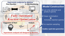Initial guess of kinetic parameters (Fig. 4e–h) was provided by the Markov chain Monte Carlo algorithm59, kinetic equations at each condition were integrated numerically and the discrepancy against the experimental yield distribution (over the hyperspace) was minimized using the trust region reflective algorithm60. See Supplementary Information Section 5.3 for further details of the kinetic model.