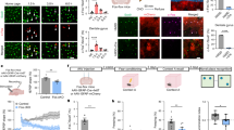 Mice were placed on doxycycline (40 mg kg−1, Bio-Serv, F4159) chow 24 h prior to and for at least 1 week after viral injection, switched to doxycycline-free chow 48 h before recall, and euthanized 24 h later. IGFBP2 antibody was infused bilaterally through implanted guide cannulas targeting basolateral amygdala. Infusions were performed using an internal cannula connected to a 10-µl Hamiltion syringe. One microgram of IGFBP2 antibody (1 mg ml−1, 1 µl per site) was infused into mice immediately after a fear recall paradigm at 400 nl min−1 using a syringe pump (SmartTouch Pump, World Precision Instruments).