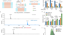 In total, 9 µl of the BS reagent was preheated at 98 °C for 5 min, and then 1 µl of 5-mer DNA or RNA oligo (50 ng µl−1) was added and the mixture was further incubated at 98 °C for 1–10 min. After cooling to room temperature, 2 μl of the reaction mixture was added to 40 μl resin (Bio-Rad) and allowed to stand at room temperature for 30 min. Then 1.8 μl supernatant was mixed with matrix 2′,4′,6′-trihydroxyacetophenone monohydrate and loaded onto a MALDI plate. The MALDI-TOF MS was recorded on an Ultra-flex TOF/TOF MALDI mass spectrometer using the negative ion reflection mode (Bruker). Data were processed in Flex Analysis software (Bruker).