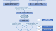We are extremely grateful to all the families who took part in the ALSPAC study, the midwives for their help in recruiting them and the whole ALSPAC team, including interviewers, computer and laboratory technicians, clerical workers, research scientists, volunteers, managers, receptionists and nurses. We acknowledge J. Bowden for statistical support and advice relating to MR-Egger regression. This publication is the work of the authors, and J. Zheng will serve as guarantor for the contents of this paper. J.Z. is funded by a Vice-Chancellor’s Fellowship from the University of Bristol. This research was also funded by the UK Medical Research Council Integrative Epidemiology Unit (MC_UU_00011/1 and MC_UU_00011/4), GlaxoSmithKline, Biogen and the Cancer Research Integrative Cancer Epidemiology Programme (C18281/A19169). The UK Medical Research Council and Wellcome (grant no. 102215/2/13/2) and the University of Bristol provided core support for ALSPAC. A comprehensive list of grant funding is available on the ALSPAC website (https://www.bristol.ac.uk/alspac/external/documents/grant-acknowledgements.pdf/). T.R.G. holds a Turing Fellowship with the Alan Turing Institute. G.H. is funded by the Wellcome Trust and the Royal Society (208806/Z/17/Z). M.V.H. is supported by a British Heart Foundation Intermediate Clinical Research Fellowship (FS/18/23/33512) and the National Institute for Health Research (NIHR) Oxford Biomedical Research Centre. This work has been supported by the NIHR Biomedical Research Centre at University Hospitals Bristol and Weston NHS Foundation Trust and the University of Bristol (G.D.S. and T.R.G.). The views expressed are those of the authors and not necessarily those of the NIHR or the Department of Health and Social Care. This work was supported by the Elizabeth Blackwell Institute for Health Research University of Bristol and the Medical Research Council Proximity to Discovery award. P.E. is supported by Cancer Research UK (CRUK; C18281/A19169). S.L. is funded by the Bau Tsu Zung Bau Kwan Yeun Hing Research and Clinical Fellowship (200008682.920006.20006.400.01) from the University of Hong Kong. J.D. is funded by a NIHR Senior Investigator award. J.D. sits on the International Cardiovascular and Metabolic advisory board for Novartis (since 2010), the UK Biobank Steering Committee (since 2011), and is a member of the MRC International Advisory Group (ING) London (since 2013), the MRC High Throughput Science ‘Omics Panel’, London (since 2013), the Scientific Advisory Committee for Sanofi (since 2013), the International Cardiovascular and Metabolism Research and Development Portfolio Committee for Novartis and the AstraZeneca Genomics advisory board (since 2018). P.C.H. is supported by CRUK Population Research Postdoctoral Fellowship C52724/A20138.