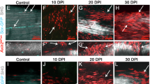 Extended Data Fig. 2 Fluid matrix mediated wound closure is supplemented days later by de novo ECM synthesis.