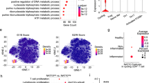 a Heatmap summarizing expressions of critical genes in glutaminolysis, glycolysis, amino acids biosynthesis and nucleotide metabolism in CKO versus FLOX TEFF cells from RNA-seq data (related to Fig. 4a). Expression data was Z-score normalized. b Differential activity of indicated metabolic reactions between FLOX and CKO splenic T cells calculated via “Compass” algorithm based on scRNA-seq data. Effect size was assessed with Cohen’s d statistic, namely absolute difference in means divided by the pooled SD. c, d TN were purified from 8-week-old FLOX and CKO mice, part of which were stimulated with anti-CD3/28 for 24 h. Then, FLOX TN, CKO TN as well as their activated counterparts were subjected to metabolic profiling. Heatmap of nucleotide profiles (c), metabolite profiles (d) in FLOX TN, FLOX TEFF, CKO TN and CKO TEFF were presented. Data was Z-score normalized. e TN were purified from 8-week-old FLOX and CKO mice and stimulated with anti-CD3/28 for 24 h. Glucose uptake measured by 2-NBDG fluorescence intensity through FCM was displayed. FLOX n = 5, CKO n = 6. ****P < 0.0001. f Relative ECAR and OCR of FLOX and CKO TN measured at baseline or with anti-CD3/CD28 beads stimulation. For ECAR, FLOX-TN n = 10, CKO-TN n = 9, FLOX-CD3/28 n = 7, CKO-CD3/28 n = 8; ***P (interaction) = 0.0006, P (*marked timepoint) = 0.0092, 0.0081, 0.0022, 0.0043, 0.0051, 0.0096, 0.0020, 0.0043, respectively. For OCR, FLOX-TN n = 9, CKO-TN n = 3, FLOX-CD3/28 n = 5, CKO-CD3/28 n = 4; **P (interaction) = 0.0090, P (*marked timepoint) = 0.0422, 0.0135, 0.0070, 0.0056, 0.0270, 0.0193, 0.0098, 0.0017, respectively. g TN were purified from 8-week-old FLOX and CKO mice, part of which were stimulated with anti-CD3/28 for 24 h. Then, ATP production of FLOX-TN (n = 6), CKO-TN (n = 5) as well as their activated counterparts (n = 5) were measured. **P = 0.0016, ****P < 0.0001. The values of “n” all refer to biologically independent samples. Error bars represent mean ± s.e.m. (e–g). Two tailed, negative binomial distribution test (e); two-tailed, two-way ANOVA with Šídák’s multiple comparisons test (f); two-tailed, one-way ANOVA with Tukey’s multiple comparisons test (g).