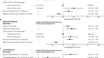 To identify risk factors of time to unfavorable outcomes, we performed multivariate Cox proportional hazards analysis. HRs with 95% Wald CIs were reported. Analyses were conducted separately for the experimental and control regimens, as the hard-to-treat phenotypes may be different for different treatment durations. All multivariate analyses were adjusted for study country. The proportional hazard assumption was tested using Schoenfeld residuals, with a P < 0.05 for non-proportionality. Model selection for multivariate Cox analysis started with a full model (included all predefined predictors) that was followed by a backward stepwise approach (P > 0.05 to remove), then a forward stepwise approach to test predictors that were removed in the backward step (P < 0.01 to include). Predictors were included using linear relationships. Non-inferiority analyses were performed in study participant subgroups, according to identified risk factors in the multivariate Cox analysis. The test for interaction for each subgroup was performed prior to non-inferiority subgroup tests21. The absolute difference in percentage of unfavorable outcomes was calculated using inverse probability study weighted Kaplan–Meier estimates22 at 24 months after start of treatment to include maximal patient-years of follow-up and retain maximal data. Non-inferiority was assessed using the upper bound of the two-sided 90% CI, determined by bootstrapping 500 samples, and a non-inferiority margin of 6 percentage points, which was used in all the parent trials1,2,3.