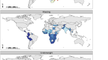 In addition to tracking progress, child nutrition measurements are important for predicting and averting morbidity and mortality. Wasting is often indicative of short-term weight loss due to food shortages, famine or diseases such as diarrhea28,29,30 and puts children at greater risk of succumbing to common infections28. Childhood overweight is likely to progress into adulthood and is associated with NCDs24, including cardiovascular disease, type 2 diabetes, sleep apnea and cancer31,32. Routine monitoring and reporting of child nutrition status can highlight trends and act as an early warning for health systems, particularly in the context of epidemiological transitions4.