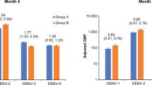 Olivera-Botello, G. et al. Tetravalent dengue vaccine reduces symptomatic and asymptomatic dengue virus infections in healthy children and adolescents aged 2–16 years in Asia and Latin America. J. Infect. Dis. 214, 994–1000 (2016).