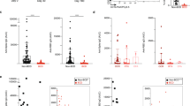 Finally, we assessed whether the differential vaccine responses of the CD4 and CD8 T cell subsets in patients with MS treated with aCD20 separated by RBD IgG response were related to the induction of antigen-specific T cell responses. The MS-aCD20 RBD antibody− group showed markedly lower abundance of AIM+ circulating TFH cells at T4 and T5 (Fig. 6f). By contrast, AIM+ TH1 cells were similar in RBD antibody+ and RBD antibody− groups. Notably, AIM+CD8 T cell vaccine responses were significantly more robust in MS-aCD20 RBD antibody− patients compared to RBD antibody+ patients after the second vaccine dose, supporting the notion that SARS-CoV-2 mRNA vaccine-induced CD8 T cell responses were more vigorous in patients who lacked B cells and antibody responses due to aCD20 treatment. Together, these data underscore the interrelated and coordinated nature of mRNA vaccine-induced immune responses and shed light on underlying ‘immune health’ differences in patients with MS on aCD20 therapy.