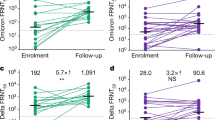 Only specimens with Ct values below 27 for the E-gene qRT–PCR diagnostic target were included in our analyses. All samples originated from the diagnostic unit of the hospital’s virology laboratory and were received for primary diagnosis of SARS-CoV-2. Remaining sample volume was stored at −80 °C, on the same day or within 24 hours. All samples had only one freeze–thaw cycle for the purpose of this study. All specimens from unvaccinated and vaccinated Delta-infected individuals were characterized by full genome sequencing or mutation-specific PCR for their infecting SARS-CoV-2 variant. Initial identification of Omicron BA.1 was done by S-gene target failure of the TaqPath COVID-19 assay (Thermo Fisher Scientific) and confirmed by partial Sanger sequencing of spike53, followed by next-generation sequencing. No sequence information was obtained for samples collected before the first detection of VOCs in Switzerland—that is, pre-VOC samples. Clinical information of the patients was collected by a standardized questionnaire in our testing center and/or through the Cantonal Health Service. The day of symptom onset was defined as day 0 in this study. Only specimens collected within the first 5 DPOS were selected for this study.
