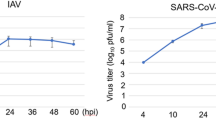 HEK293T (CRL-1573), Vero E6 (CRL-1586) and MDCK-NLB-2 (CCL-34) cells were obtained from American Type Culture Collection (ATCC) and were maintained according to ATCC instructions. A549-Dual (a549d-nfis) and THP1-Dual (thpd-nfis) were obtained from InvivoGen and maintained according to the manufacturer’s instructions. All cell lines used in the present study were routinely checked for Mycoplasma contamination (MycoAlert Mycoplasma Detection Kit, Lonza) and were authenticated by the respective vendors. All cell lines used for SARS-CoV-2 experimentation, including Huh-7, ACE2-TMPRSS2-Huh-7.5 and ACE2-A549 cells, were maintained at 37 °C in complete Dulbecco’s modified Eagle’s medium (DMEM; Gibco) containing 10% fetal bovine serum (FBS; Invitrogen), penicillin and streptomycin (Gibco) and Hepes buffer (Gibco). The ACE2-A549 cells were specially engineered to overexpress the ACE2 receptor in human alveolar basal epithelial cells (A549), whereas the ACE2-TMPRSS2-Huh-7.5 cells were a kind gift of the Catherine Blish laboratory and engineered to overexpress both hACE2 and human TMPRSS2 receptors. A549-Dual and THP1-Dual cells were purchased from InvivoGen.