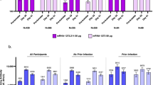 The bivalent mRNA-1273.222 50 µg vaccine contains equal amounts of two mRNAs (25 µg of each mRNA sequence) that encode the prefusion-stabilized spike glycoproteins of the ancestral SARS-CoV-2 (Wuhan-Hu-1) and the Omicron variants (BA.4 and BA.5 have identical sequences and are designated as BA.4/BA.5). The monovalent mRNA-1273 50 µg original (Moderna COVID-19) vaccine)23,24 contains a single mRNA sequence encoding the spike glycoprotein of ancestral SARS-CoV-2 (Wuhan-Hu-1). In both vaccines, mRNAs are encapsulated in lipid nanoparticles as described previously35. The booster doses of mRNA-1273.222 and mRNA-1273 were administered by IM injection at doses of 50 µg of mRNA in a 0.5 ml volume.