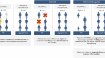 Time-to-event endpoints were compared between treatment groups using a stratified log-rank test unless otherwise stated. HRs and associated 95% two-sided CIs were estimated by a Cox proportional hazards model. Median time-to-event endpoints were estimated by the Kaplan–Meier method, and 95% CIs based on the Brookmeyer–Crowley method. For subgroup analysis of rPFS (except by BRCA status), the HR was based on an unstratified Cox model with treatment as the only covariate due to small patient numbers in some subgroups. Missing/partial dates were imputed as specified per protocol. Other missing data were not imputed. Reported P values are two sided.