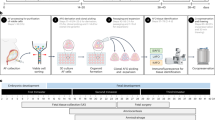 Fetal bladder or placental biopsies were isolated and washed with ice-cold HBSS. Briefly, the samples were minced and washed in ADMEM+++. Tissue fragments were digested in ADMEM+++ containing 1 mg ml−1 collagenase (C9407, Sigma), 2.4 U ml−1 dispase (Thermo Fisher, 17105041) and 0.1 mg ml−1 DNase (Merck, 260913) on an orbital shaker at 37 °C for 20–60 min. The digested tissue was then strained through at 70 μm followed by 40 μm. Tissue fragments were washed in ice-cold basal medium with 10% FBS in 50-ml Falcon tubes and centrifuged at 300g for 10 min at 4 °C. The supernatant was discarded and the pellet was resuspended in Matrigel (Corning, 354230) and cultured in expansion medium (Supplementary Table 3) supplemented with ROCKi and Primocin (Invivogen, NC9141851).
