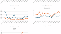 In the delandistrogene moxeparvovec group, seven patients (11.1%) experienced 10 TR-SAEs as reported by the principal investigator: acute liver injury (terms selected by investigators that refer to similar clinical patterns of liver biochemical markers included transient liver enzyme elevations (three events), hepatotoxicity and liver injury (one event of each)), myocarditis, nausea, vomiting, pyrexia and rhabdomyolysis (one event of each) (Fig. 5). The onset of the TR-SAEs were days 30–51 for acute liver injury, day 1 for myocarditis, nausea, vomiting and pyrexia and day 2 for rhabdomyolysis. All have resolved. For detailed narratives on TR-SAEs, see Extended Data Table 3.