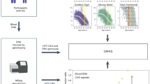 DNA was extracted from whole blood using the chemagic 360-D instrument (Perkin Elmer) for automated DNA extraction. The modal length of the pure HTT CAG repeat, the HTT repeat structure and quantity of blood HTT somatic expansions in the HDGE group were determined by ultra-deep amplicon MiSeq sequencing14,68. The HTT MiSeq reads were processed and genotyped using ScaleHD (v1 (ref. 14)) and RGT (https://github.com/hossam26644/RGT). The SER14 of the HTT CAG repeat was quantified from MiSeq data at baseline and follow-up, allowing for longitudinal assessment of somatic expansion changes during the interval between the two visits. CAG repeat length estimated using MiSeq was used for all statistical analyses of associations.