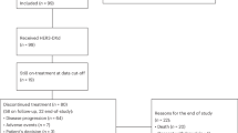 Following screening between 27 December 2018 and 31 December 2021, 577 patients with centrally confirmed HER2-low metastatic breast cancer were randomly assigned to receive either T-DXd (n = 373) or TPC (n = 184)8 (Fig. 1a). At the updated data cutoff date with a median follow-up of 32.0 months (95% confidence interval (CI) 31.0–32.8), 17 patients (4.6%) remained on T-DXd treatment, whereas none of the patients assigned to the TPC arm continued study treatment (Fig. 1a). The main reason for treatment discontinuation in both treatment arms was disease progression; 256 patients (69.0%) and 132 patients (76.7%) experienced disease progression in the T-DXd and TPC arms, respectively. Demographics and baseline characteristics for the overall and HR cohorts are presented in Table 1.