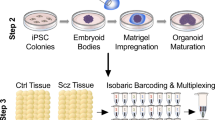 iTracer+ iCRISPR cells were prepared as previously described above. Following cell recovery after flow cytometry, 2,000 cells per well in a 96-well plate were seeded and differentiated into cerebral organoids using a whole-organoid differentiation protocol5,22. Throughout development, organoids were scarred by activation of inducible Cas9 (Fig. 1b and Supplementary Table 1). Scarring was achieved by first selecting the organoid to be scarred and transferring it to a six- to 24-well plate (depending on organoid size) filled with scarring medium with 8 µg ml−1 doxycycline (base medium depending on the age of the organoid, Supplementary Table 1). Organoids were incubated in scarring medium for 24 h before returning to base medium without doxycycline.