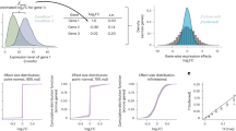 We defined genetic interactions as follows. For each of the 124 double perturbations and the 1,000 read-out genes, we computed the difference between the observed expression value and the additive expectation. These values showed a mixture distribution composed of a large component with a single narrow peak around 0 (corresponding to a majority of non-interactions) and a smaller component consisting of two pronounced tails on either side (corresponding to interactions) (Extended Data Fig. 3). To decompose this mixture, we used Efron’s empirical null approach30, as implemented in the ‘locfdr’ package (version 1.1-8).