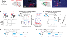The behavioral task and training have been described61,62. The stimulus was a metal pin (0.9 mm in diameter), presented at one of two possible positions (Fig. 1a). The two pole positions were 5 mm apart along the anterior–posterior axis. The posterior pole position was 5 mm from the whisker pad. A two-spout lickport (4.5 mm between spouts) was used to deliver water rewards and record licks.