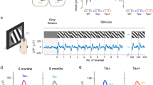 For cellular and spine analysis, full-frame data were registered (Moco, ImageJ v1.53t) (ref. 77) and analyzed by at least three experimenters who were blind to condition and time course. Cellular (and background) regions of interest (ROIs) were drawn. Cells with filled nuclei due to GCaMP overexpression were excluded. Signal processing removed slow changes in fluorescence, normalized to the background and thresholded (15%). For excitatory and inhibitory neurons, activity was estimated as the AUC of the ΔF/F0 trace per second2,42,43,78. Measures of ΔF/F0 amplitude and frequency were made using peak detection in MATLAB3. Total cellular activity was taken as activity recorded during LED stimulation and in the dark. In a subset of analyses, activity was normalized to baseline levels, by either subtracting the AUC of each cell’s activity from its baseline (Figs.1c and 2f), or by normalizing the AUC of active cells and spines to the mean of the baseline (Figs. 2g,h, 4 and 5 and Supplementary Fig. 2). Deconvolution of calcium traces used standard approaches79. Analysis estimating highly active neurons (Supplementary Fig. 2c) was adapted from published approaches8. Calcium transient frequency was calculated and the percentage of neurons falling into the low (minimum–Q1), middle (Q2–Q3) and high (>Q3) range based on the 3-month-old control distribution was counted.