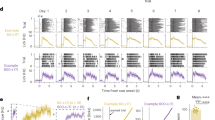 No statistical methods were used to predetermine sample sizes, but our sample sizes are similar to those reported in previous publications20,28. For tests of statistical significance, sessions were pooled across animals when groups of sessions were compared (for example, comparisons across performance levels). Trials were pooled across sessions when different trial types were compared (for example, comparisons across stay and switch trials). The main results were not qualitatively different without pooling. Non-parametric tests were used for comparisons across two groups (Wilcoxon signed-rank/rank-sum test) and three or more groups (Kruskal–Wallis test), unless otherwise stated. Significance levels were adjusted for multiple comparisons (Bonferroni correction), as noted in the figure captions. To account for the hierarchical structure in the data, we performed additional linear mixed model analyses with fixed and random effects for all tests with pooled data using animal identity as the grouping factor for random intercepts and random slopes. Linear mixed models confirmed the main results (see Supplementary Table 2). Data are presented as mean ± s.e.m. across animals, sessions or trials, as specified in the figure captions. Box plot elements are defined in the following way: center lines represent the median values, box limits represent the upper and lower quartiles, whiskers represent 1.5× interquartile range, and points represent outliers. Significance levels are indicated as *P < 0.05, **P < 0.01 and ***P < 0.001 in all figures.