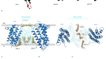Analysis was carried out with Python scripts based on MDAnalysis84 (distances, root-mean-square deviation (RMSD), root-mean-square fluctuation (RMSF)). Sodium density maps were calculated with MDAnalysis from trajectories that were structurally superimposed on all Cα atoms of protomer A (for simulation f-01-0) or all protein Cα atoms (simulation f-23-1). Lipid density maps were calculated for all lipids, PI and POPE in simulation f-01-0. Time series of bound Na+ distances to carboxyl oxygen atoms in D277 and D278 were calculated for all Na+ ions as the shortest distance between Na+ and either Asp OD1, OD2 atoms. Binding of Na+ ions was assessed with a simple distance criterion: any Na+ ion within 3 Å of any carboxyl oxygen atom of Asp277 was considered bound. Molecular images were prepared in VMD 1.9.485 and UCSF Chimera86.